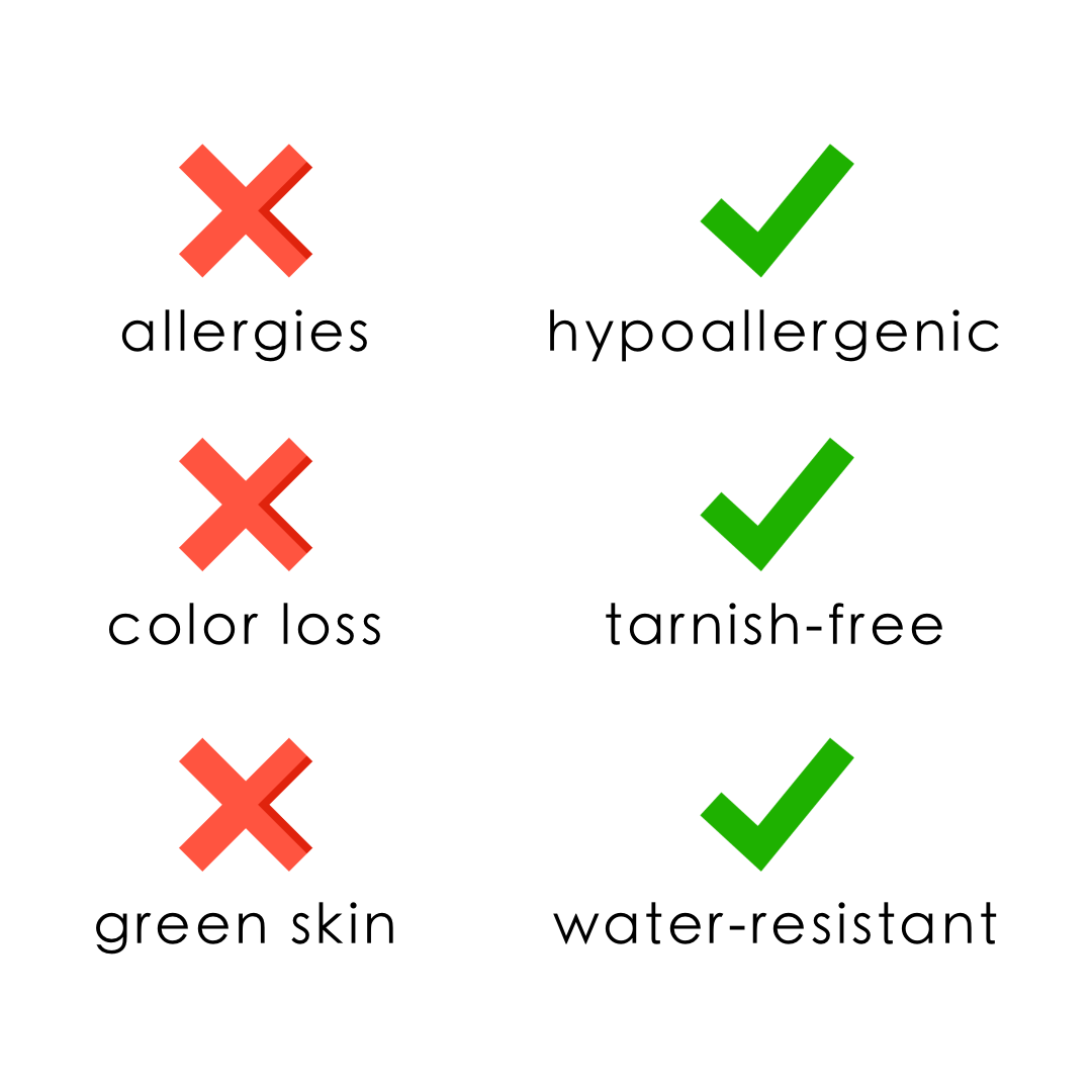 Through everyday life, from ocean dips to sweaty summer days, they hold up beautifully. No discoloration. No green skin. Just lasting shine and timeless elegance.